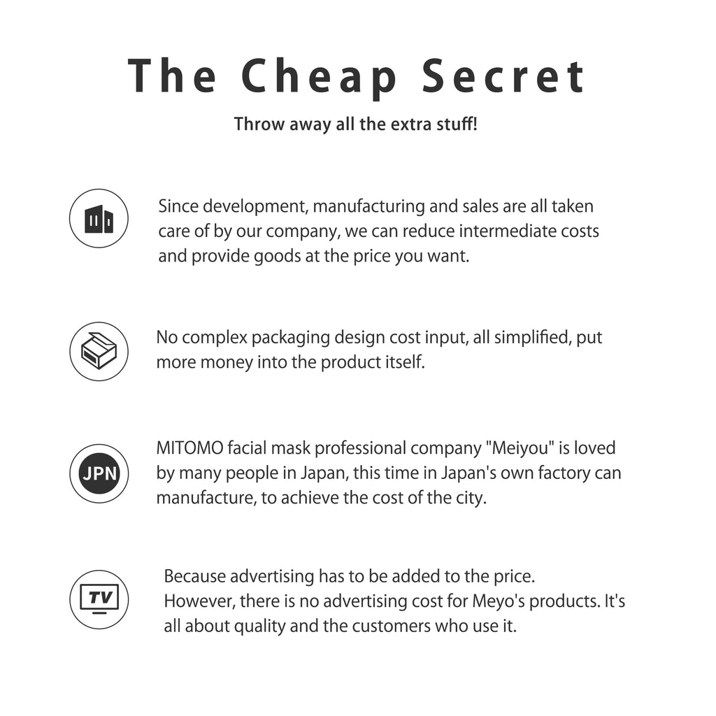 Compared to many other face masks in the market, with Mitomo's face mask, you can feel the difference immediately by using only once. When you apply our mask sheet to your face, you'll notice that your tired skin becomes much elastic, clear, younger and will relieve your skin from stress.