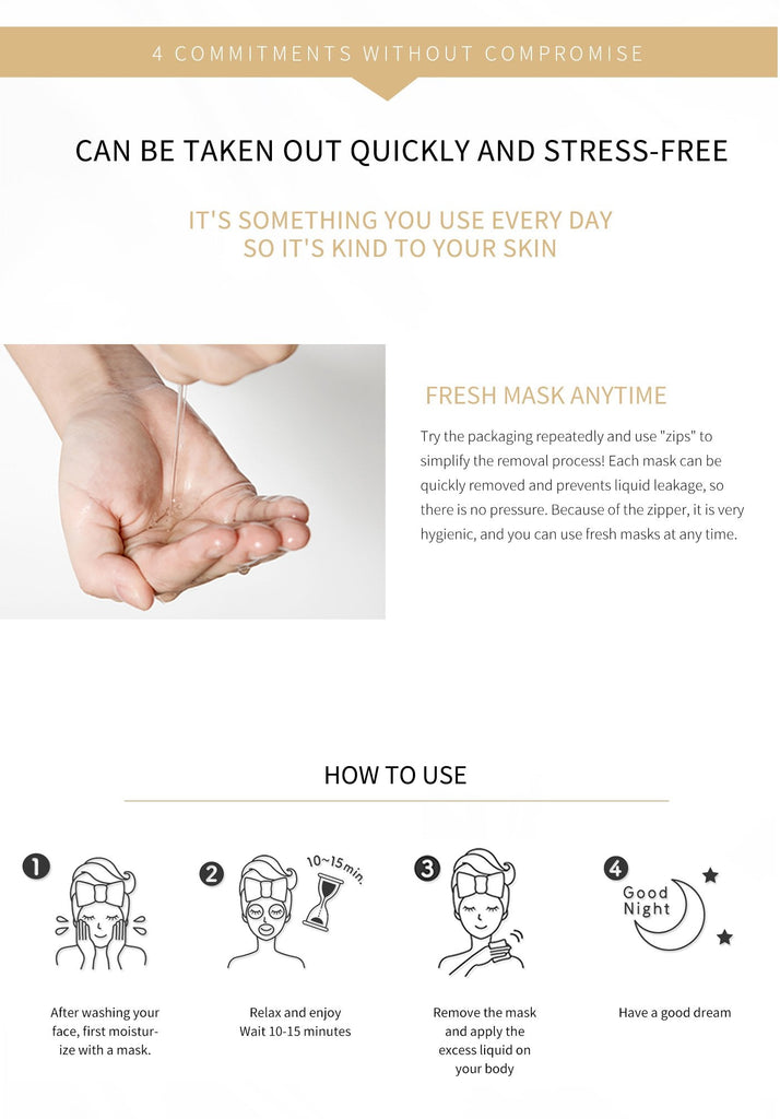 必要な時間が経過したら、顔からマスクを外し、残りのエッセンスを使用して顔をマッサージし、さらなる吸収を助けます。