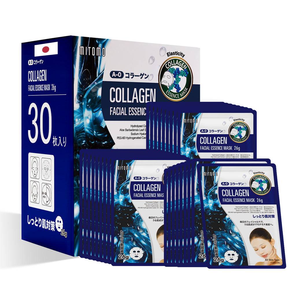 MITOMO Natural Collagen Elasticity Facial Essence Mask/30 Sheets【MTSS00516-A-0x003】is recommended for those who want youthful skin. The natural collagen contained in this essence mask helps to firmly retain moisture in the skin, giving it a sense of resilience. Incorporate it into your daily skincare routine to keep your skin youthful.