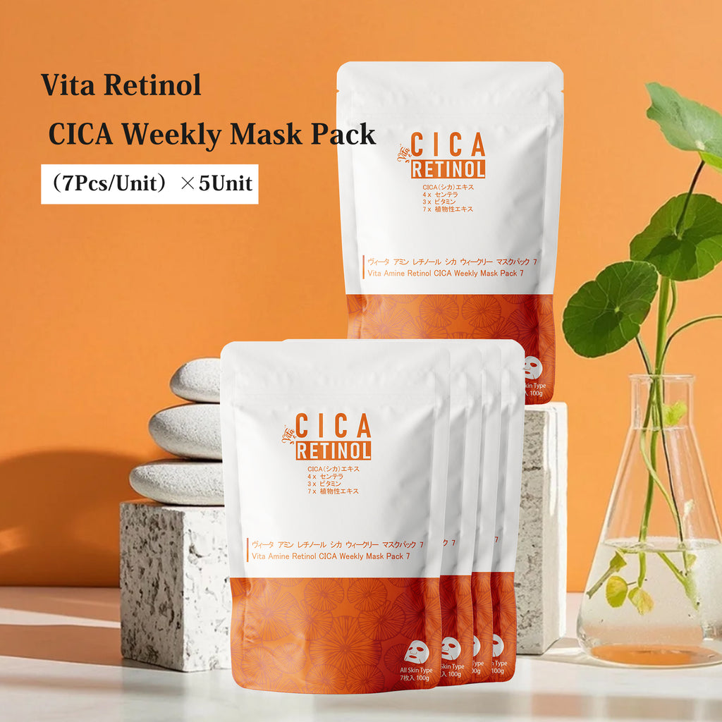 MITOMO CICA & Retinol Weekly Mask Pack (7 sheets) × 5 packs (Item No.: CCSA00001-D-100)