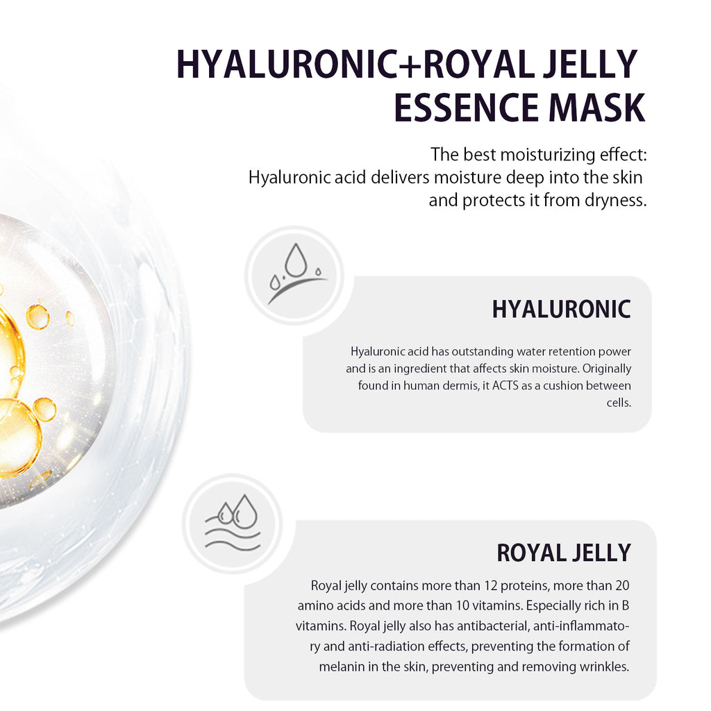 MITOMO Hyaluronic Acid + Royal Jelly Essence Mask [MCSS00601-A-0x003] - This essence mask is specially designed for young women focusing on moisturizing the skin. Hyaluronic acid and royal jelly provide moisture to the skin, achieving a soft and smooth complexion. Incorporate it into your daily skincare routine and achieve beautiful skin.