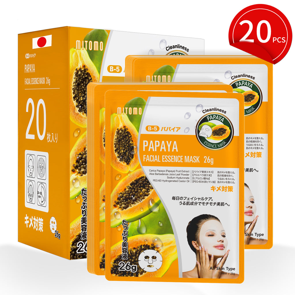 MITOMO Natural 516 Papaya Facial Essence Mask:20 Sheets[MTSS00516-B-5x002]