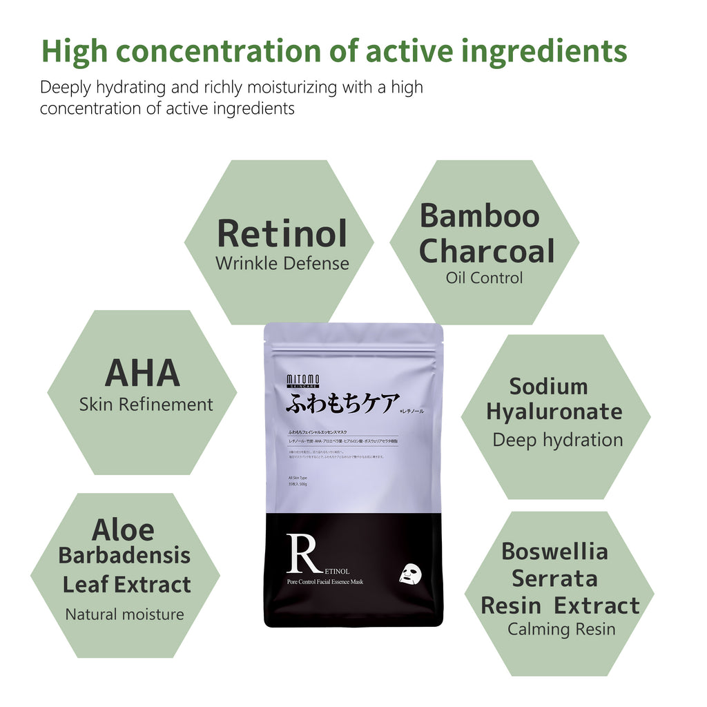 MITOMO SKIN CARE Pore Control Facial Essence Mask.Bamboo Charcoal & Retinol for Clear Skin【MTSA00505-E-3】